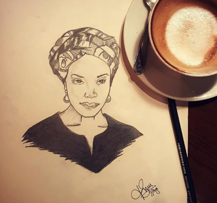 A quick sketch of Chimamanda Ngozi Adichie, Nigerian author and one of the most important feminist voices writing today. Done in pencil at a café. I draw the writers I keep coming back to. Manto is on this page too, for the same reason.